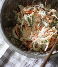 ★固めの衣(小麦粉:冷水=1:1で 具に対して少なめの衣(衣と具の割合 1:3位(↓下の写真)