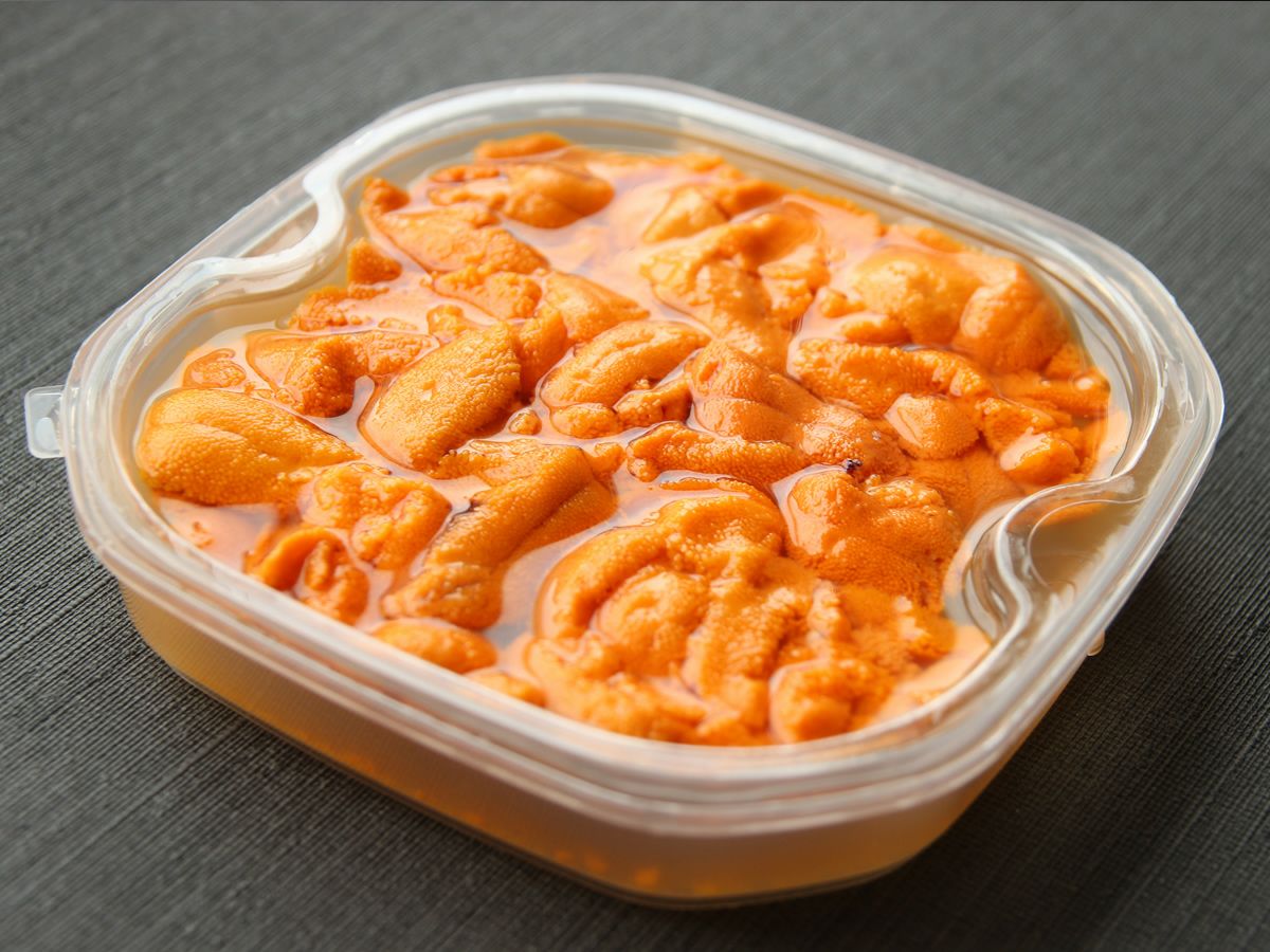 生うには、むきたてのウニを塩水に入れてお届けしています。 |