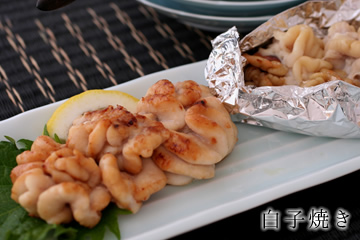 | 外はカリッと中はとろ~りの天ぷらで。 | 白子は焼くとさらに濃厚な味わいに。 |