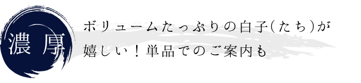 | まったりとして、お口の中でとろける鮮度抜群のたち(白子) | 身が厚くぷりぷりでホコホコ!朝とれの最高の鮮度を実感。 |