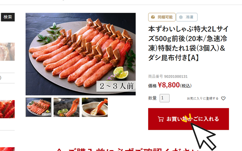 欲しい商品が見つかったら、「ご注文はこちら」をクリックし、「お買い物かご」に入れます。 |