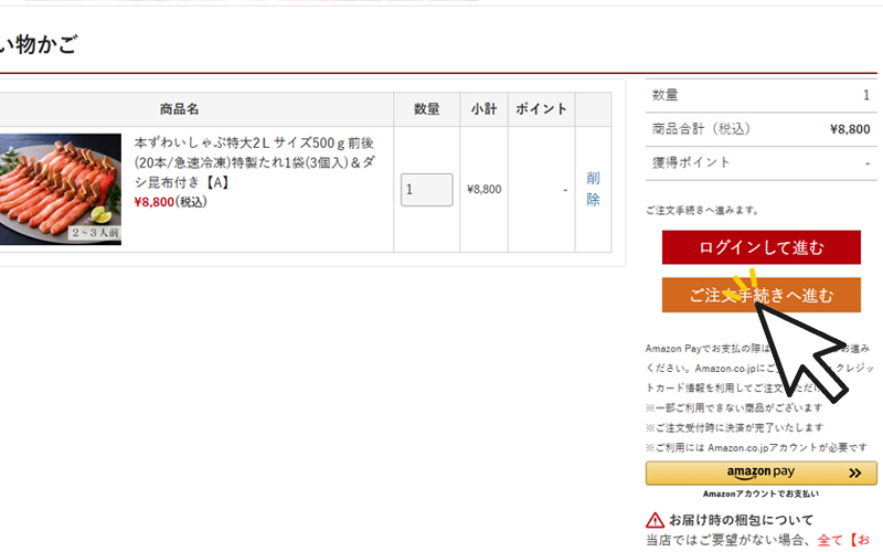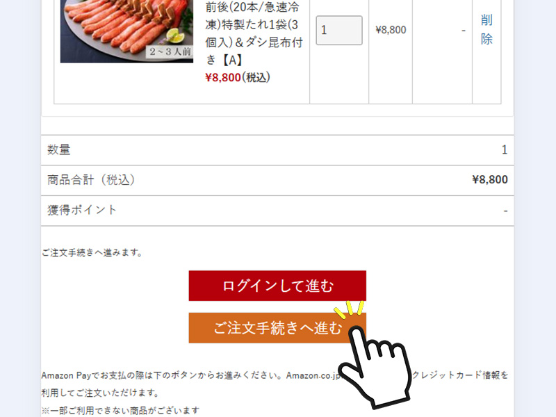 オレンジの「ご注文手続きへ進む」をクリックしてください。 |