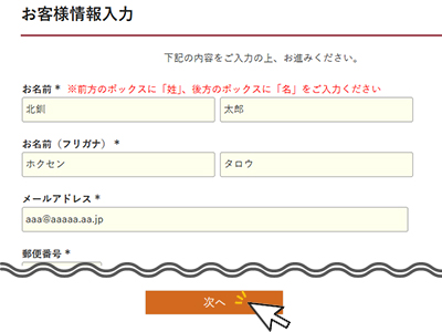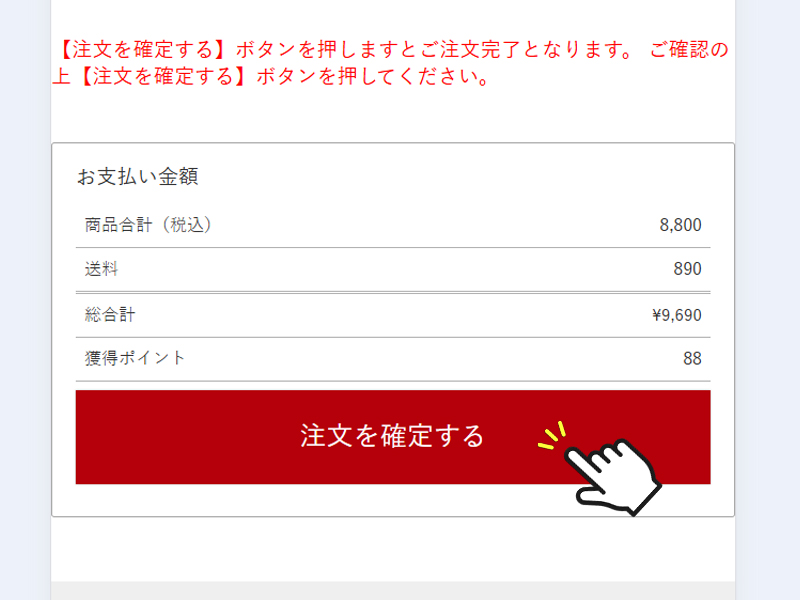 入力した項目に間違いがないかを確認いただきましたら、「注文を確定する」をクリックしてください。 ![]() |