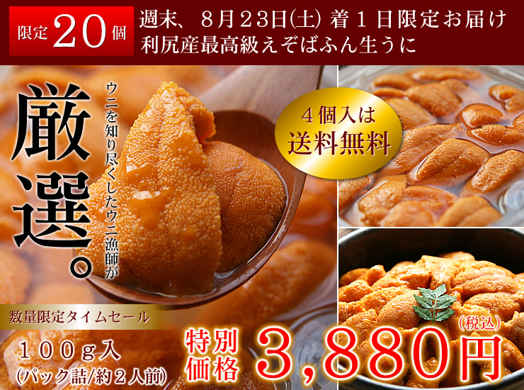 昨年のサミットでも、世界の首脳をうならせた 利尻産のえぞばふん生うに。 利尻のうに漁師 川原親方は、 自ら採ってくるえぞばふんうにの中から、 更に選りすぐって、濃厚でコクがある、 とろけ甘さのえぞばふん生うにだけを作ります。 そんな最高級「お鮨屋さん」「料亭」仕様のえぞばふんうにの美味しさを、 この度も漁師価格でご案内。 最高に贅沢なえぞばふん生うにを、 お手頃価格で、思いっきりご堪能いただけます。